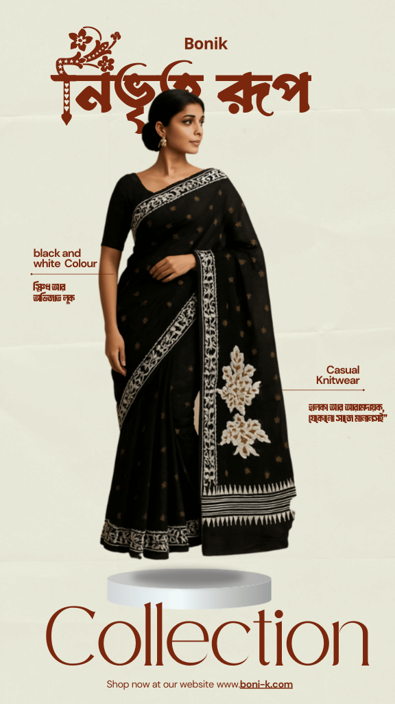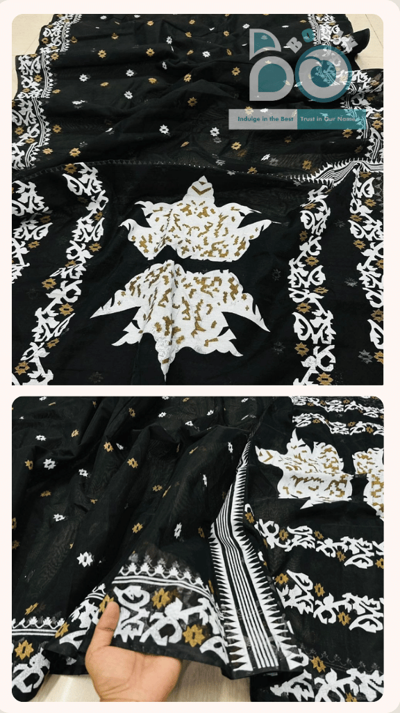 ওমা সাড়ি – নরম ও আরামদায়ক ব্ল্যাক অ্যান্ড হোয়াইট কটন সাড়ি