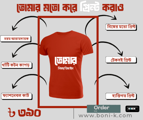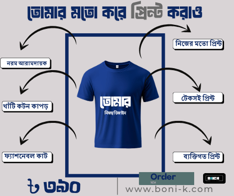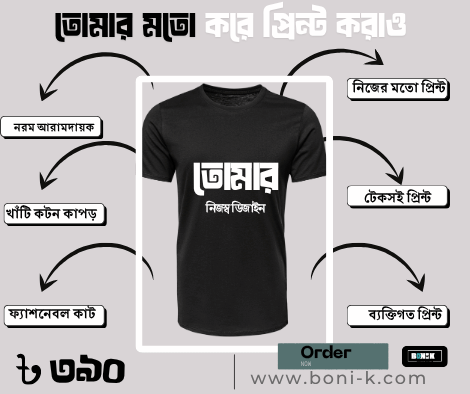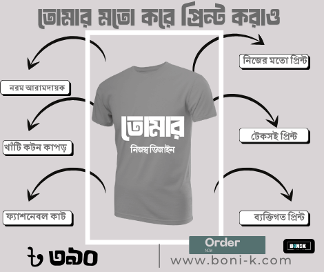 আমরা নিয়ে এসেছি কাস্টম নাম প্রিন্টেড টি-শার্ট — যেখানে তুমি দিতে পারবে তোমার ভালোবাসার নাম, বন্ধুর নাম, কিংবা নিজের নাম!